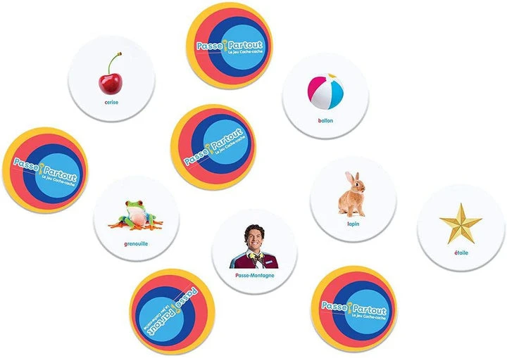 Travaille ton sens de l’observation et ta mémoire avec le jeu Cache-cache de Passe-Partout! Comme Passe-Carreau et Passe-Partout, joue les détectives et regarde bien les cartes-images placées sur la table par le maître du jeu, car il en fera disparaître une avec sa couverture magique. Sauras-tu l’identifier?