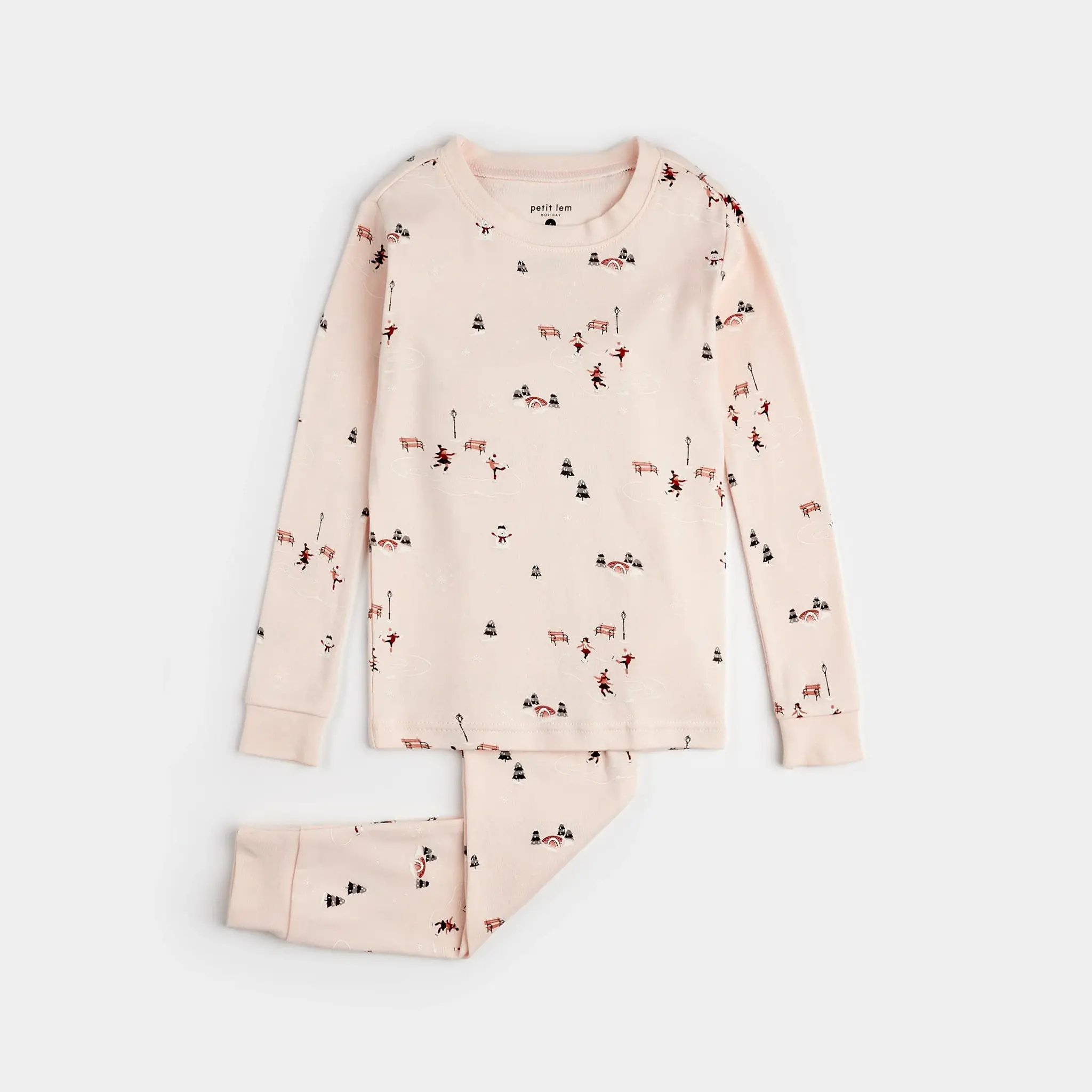 Ce joli pyjama rose est orné d’un motif de patin sur étang pour les enfants qui adorent l’hiver. Avec son haut à manches longues et son pantalon assorti, l’ensemble est idéal pour rester au chaud au lit ou pour se prélasser à la maison. L’encolure arrondie et les poignets élastiqués du haut assurent une coupe confortable, facile à enfiler et à enlever. Le pantalon est doté de chevilles à revers et d’une bande de taille légèrement élastique pour un bon maintien et un habillage simple.